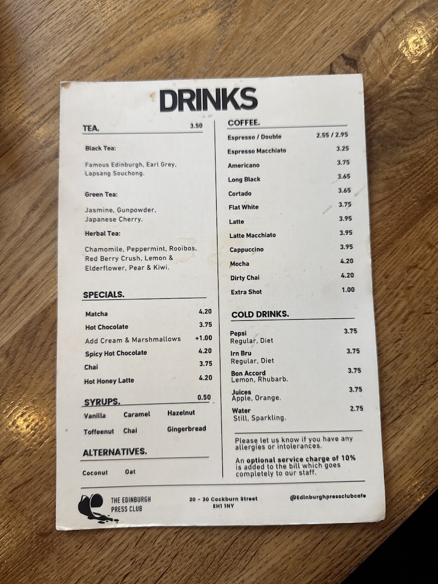 In summary, the Edinburgh Press Club Menu offers a memorable balance of tradition, taste, and ambiance. It’s a must-visit for those who value quality over quantity and want to experience Edinburgh’s café culture with a unique, local touch.
